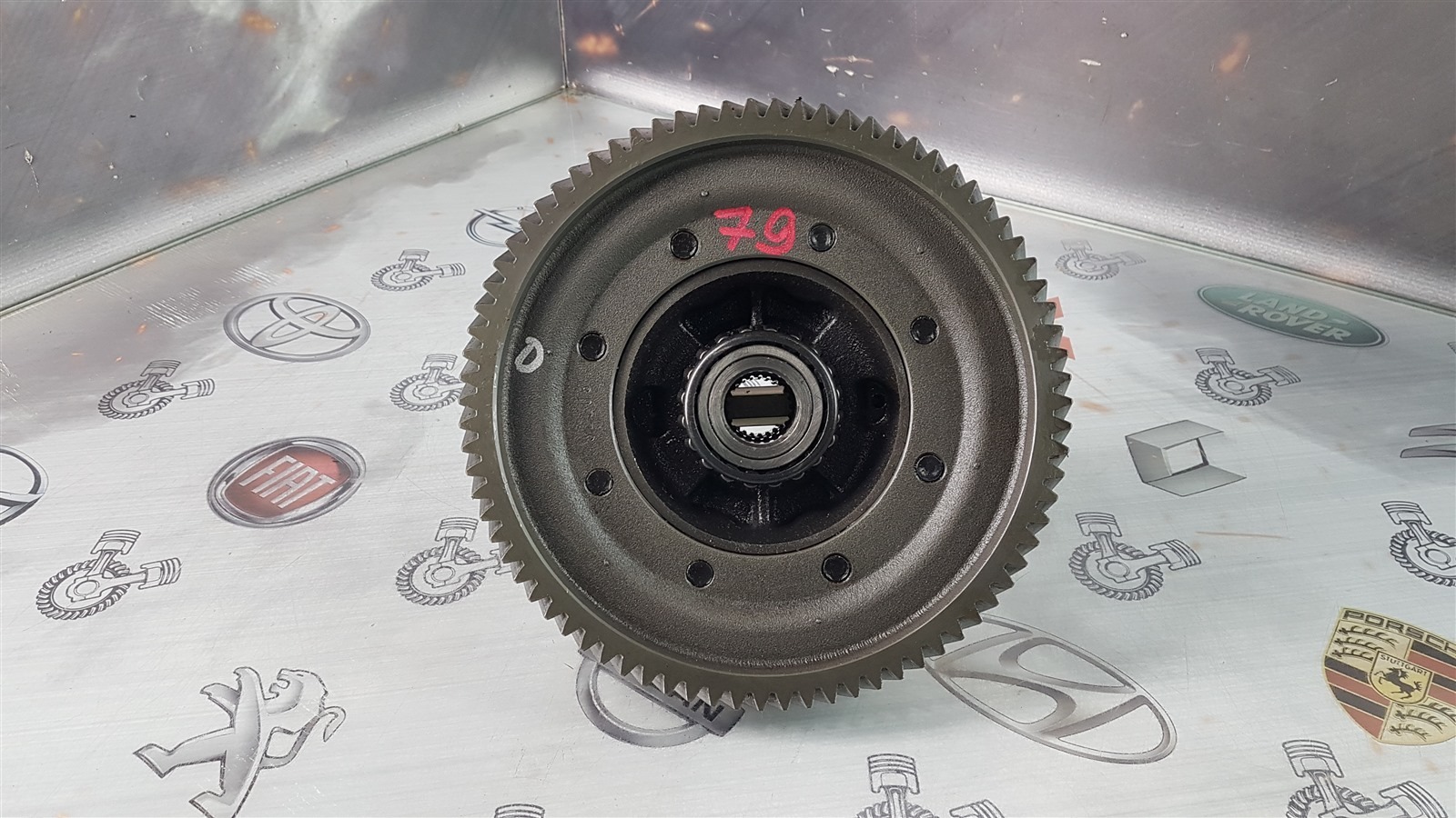 79 зубьев. Как на фото. Без повреждений. Зубья в порядке. Правый руль