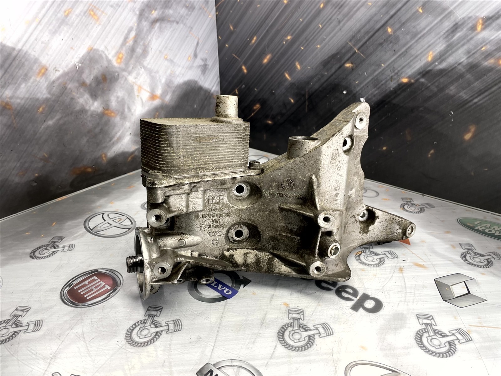 Кронштейн генератора с корпусом масляного фильтра и теплообменника. Без дефектов. На фото он. . Скидка с сайта предоставляется при оформлении заказа через сайт или при расчете наличными в офисе компании Левый руль