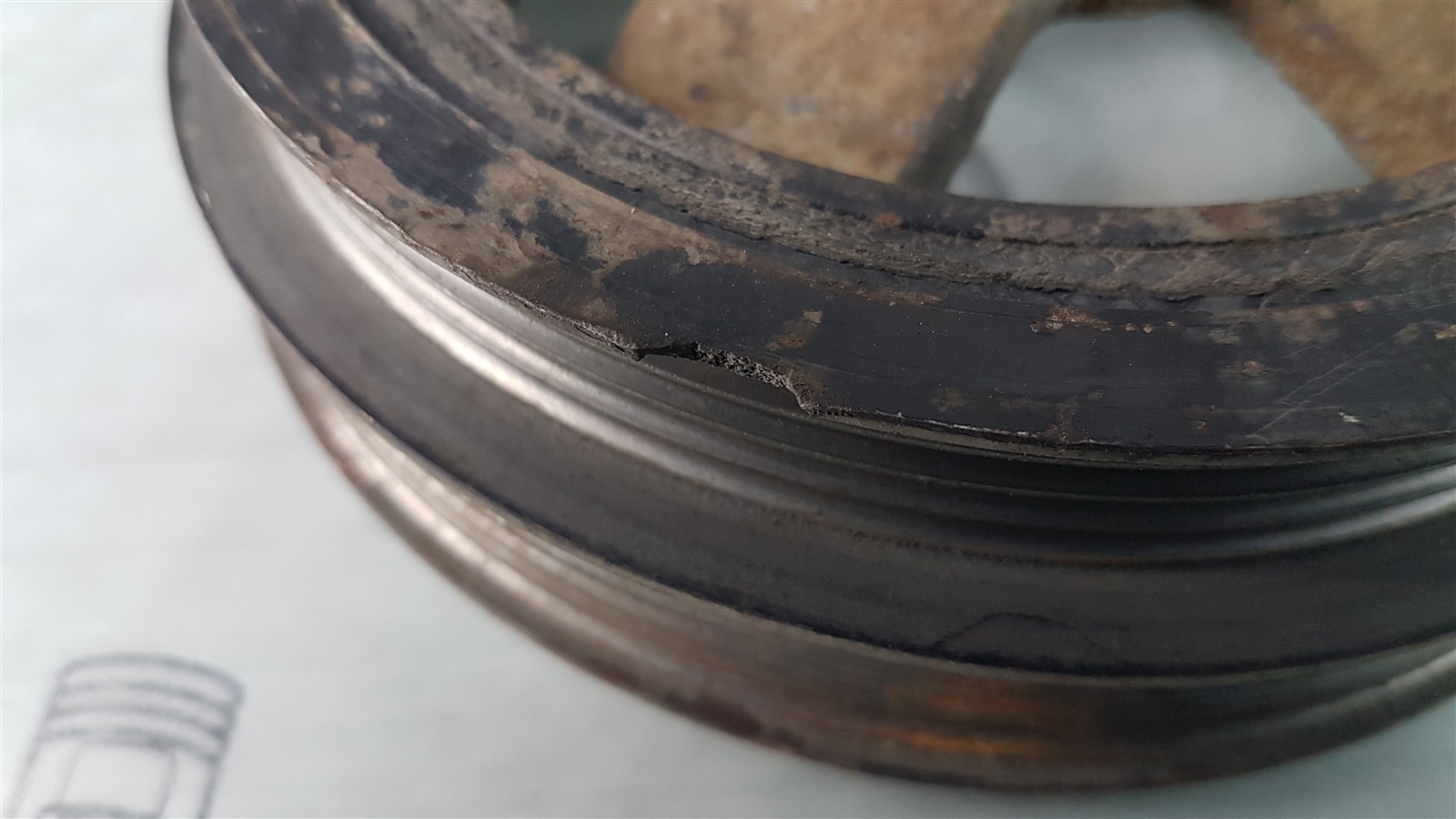 На 2 ручейковых ремня, шпоночный паз в порядке. Скол, смотреть фото. Правый руль